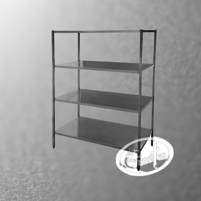 Стеллаж из нержавеющей стали со сплошными или решетчатыми полками для предприятий общественного питания и торговли.